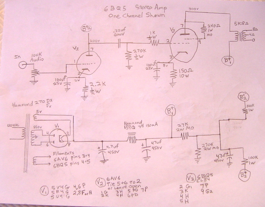 same 6SL7 for the second stage of the preamp, so the schematic is