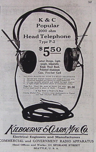 Kilbourne & Clark Headphones from Radio News, September,