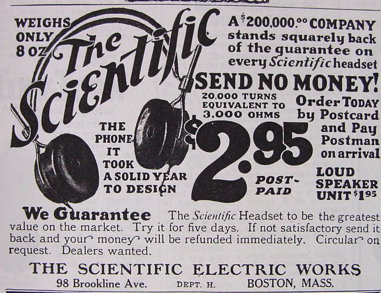 Scientific Headphones, Radio News, December 1923