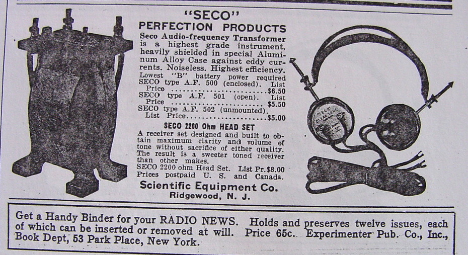 SECO Headphones Radio News, November 1922
